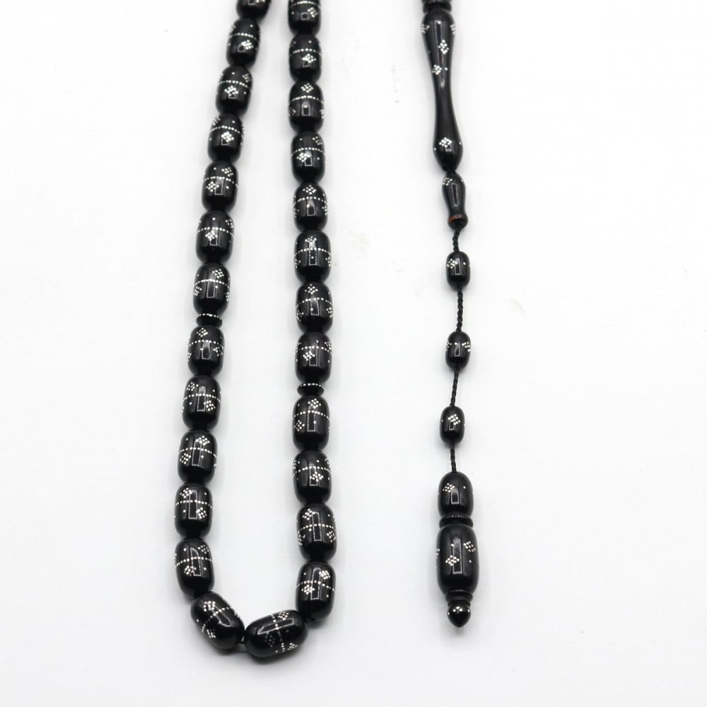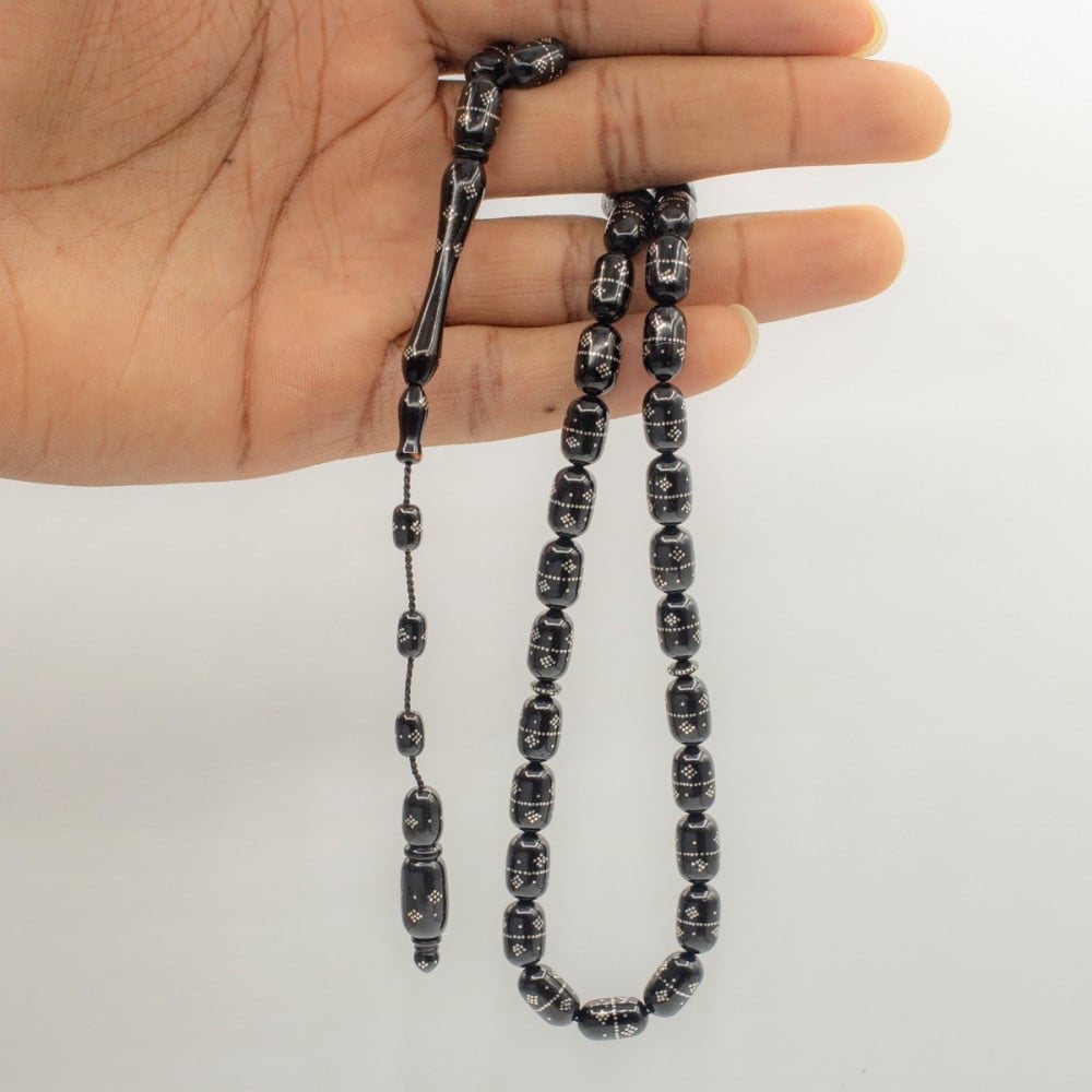 سبحه من ثمره الكوك مطعمه بالفضه ومنقوشه يدوياً