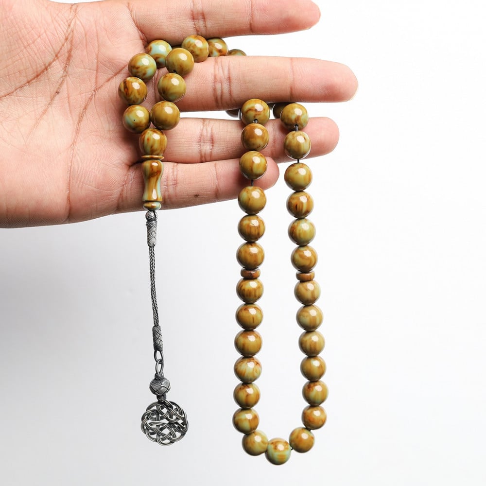 سبحه من خام الفاتوران مضاف اليها طربزونة فضة مخروطه يدوي