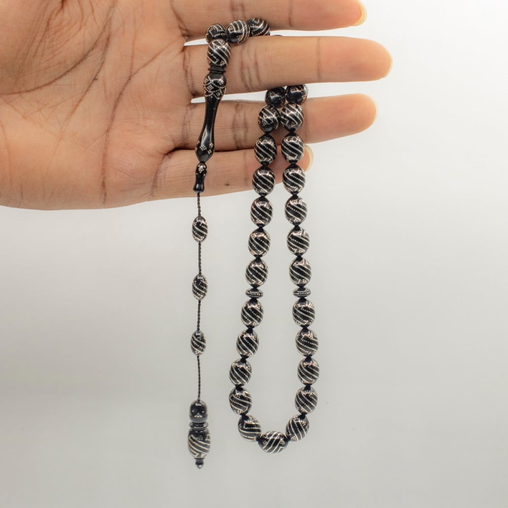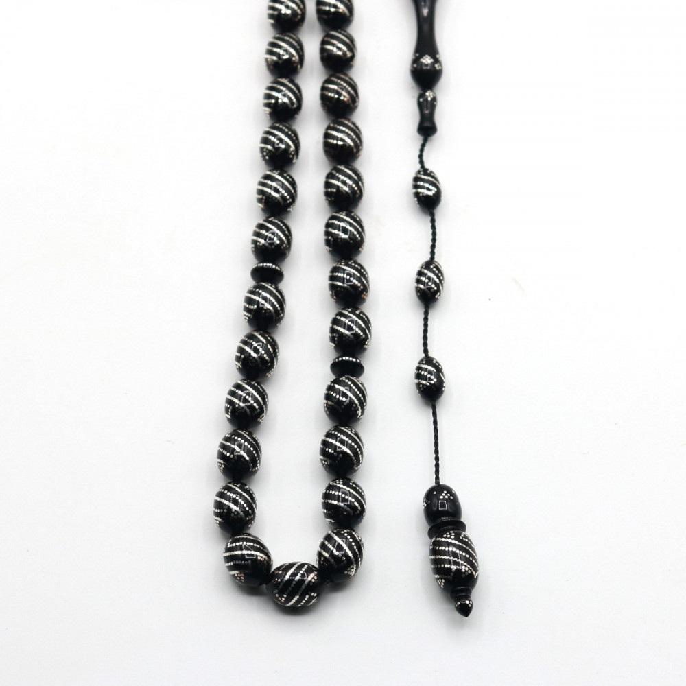 سبحه من ثمره الكوك مطعمه بالفضه ومنقوشه يدوياً