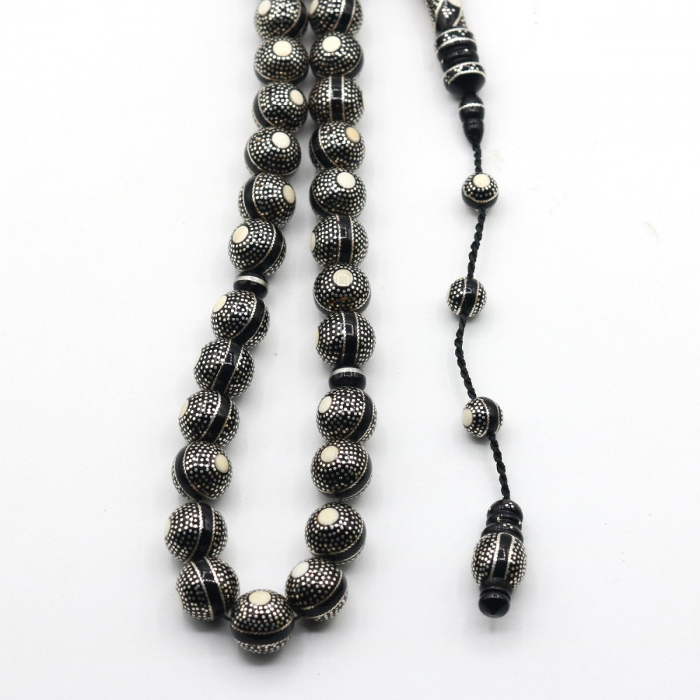 سبحه من ثمره الكوك مطعمه بالفضه والعاج ومنقوشه يدوياً
