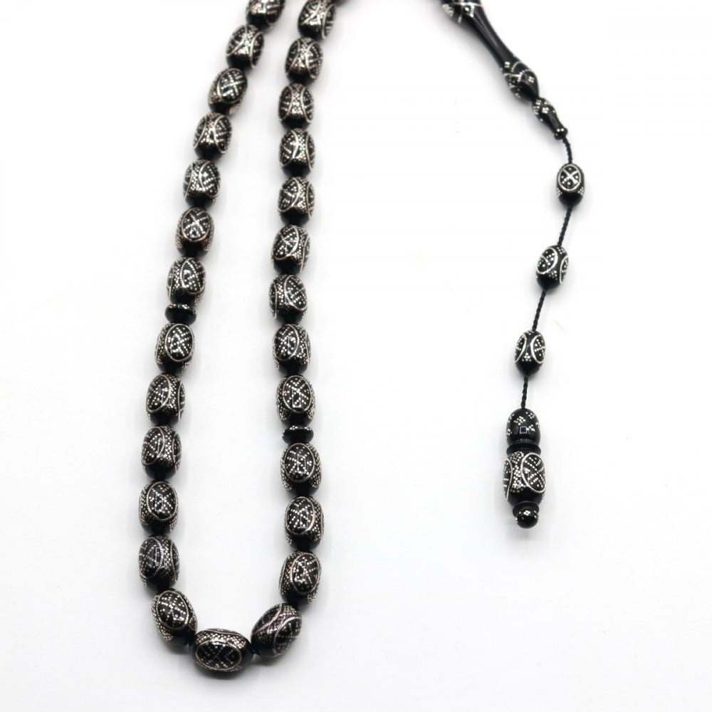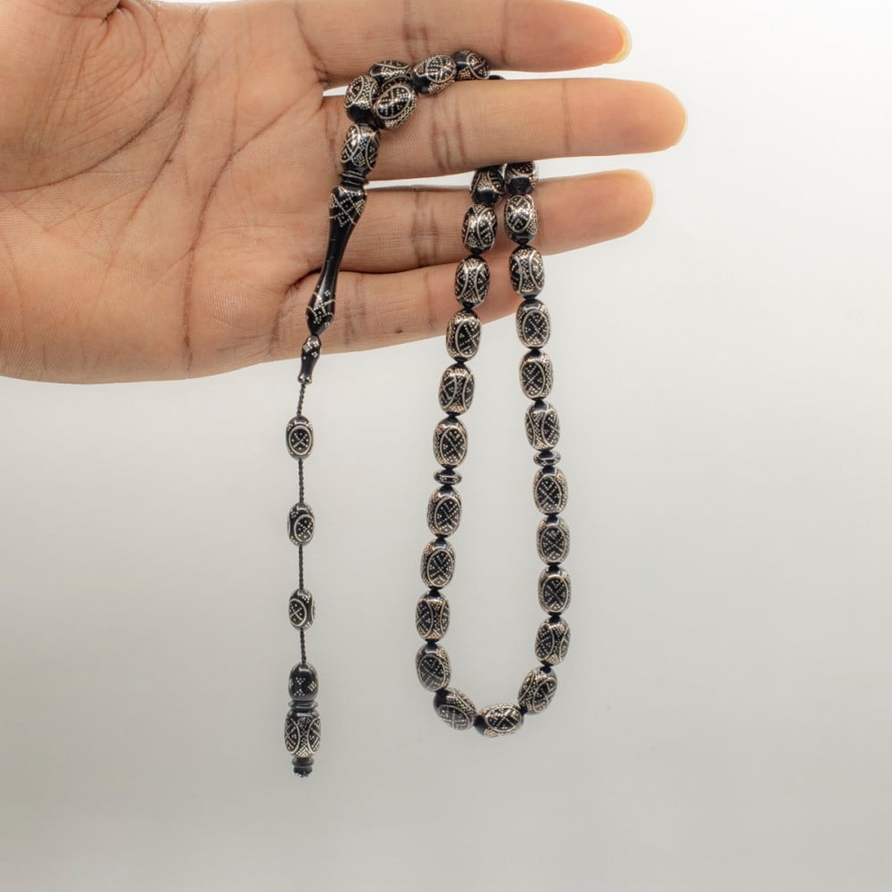 سبحه من ثمره الكوك مطعمه بالفضه ومنقوشه يدوياً
