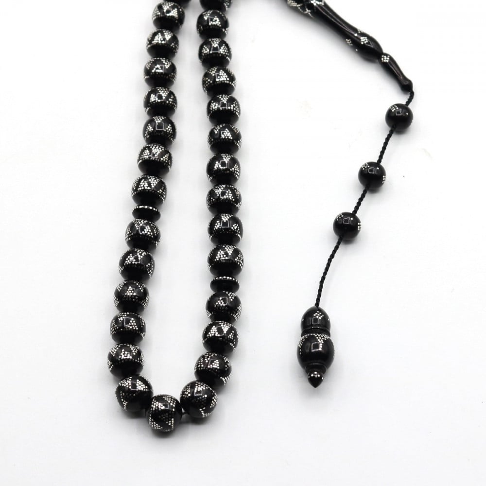 سبحه من ثمره الكوك مطعمه بالفضه ومنقوشه يدوياً