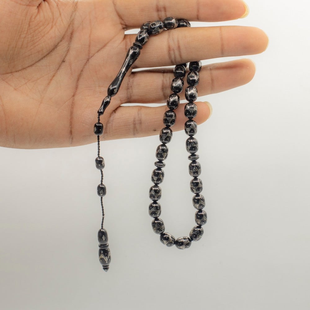 سبحه من ثمره الكوك مطعمه بالفضه ومنقوشه يدوياً